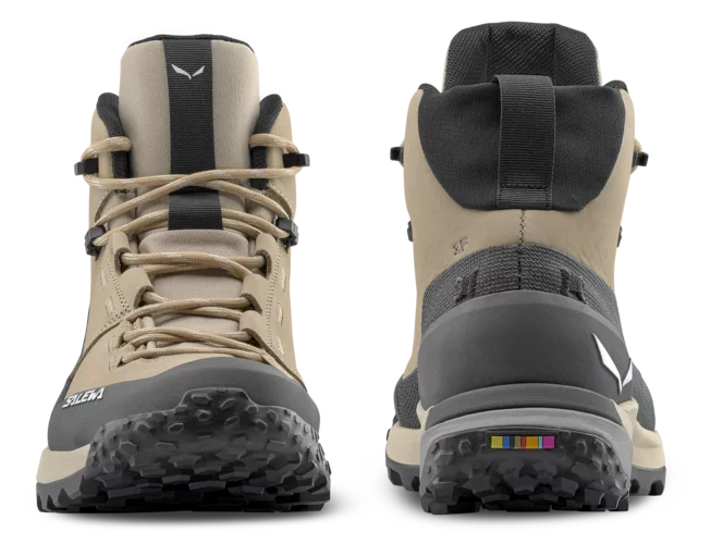 Der Puez Leather Mid PTX W ist ein komfortabler und wasserdichter Leder-Trekkingschuh, ideal für lange Bergwanderungen und Trekkingtouren. Sein Obermaterial aus hochwertigem italienischem Nubukleder wird durch einen hybriden Schutzrand und das 3F-System mit Kevlar®-Schnüren verstärkt, was Stabilität und Schutz selbst in anspruchsvollem Gelände bietet.