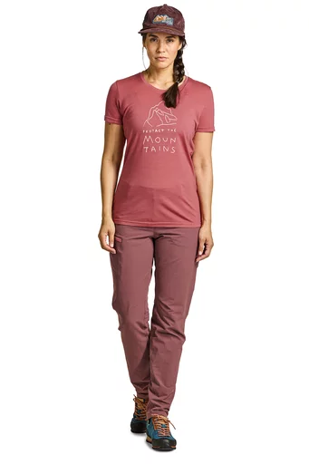Stark, robust und nachhaltige Kühlung: Dank des widerstandsfähigen Garns sowie der natürlich kühlenden Wirkung von Tencel ist die 150 Merino Cool Linie für Damen ideal für heiße Sommertage in den Bergen. Mit der Beta-spun Technologie bekommt das 150 Cool Mtn Protector T-shirt die nötige Stabilität: Durch den schützenden Polyamidmantel gewinnt der Stoff an Abrieb- und Reißfestigkeit. Gleichzeitig bieten die feinen Merinofasern einmaligen Tragekomfort und sorgen für ein optimales Körperklima, während Tencel -fasern durch ihre glatte Oberfläche und hohe Verdunstung kühlen, wenn es heiß wird. Das 150 Cool Mtn Protector T-shirt für Damen ist dadurch speziell an warmen Sommertagen der perfekte Begleiter.